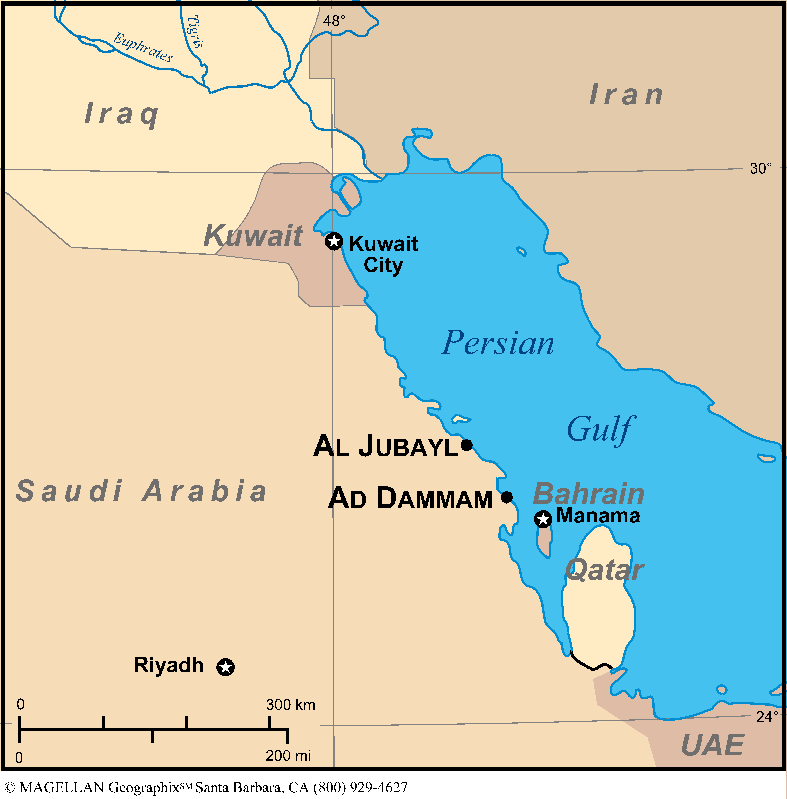 Figure 1. Locations of Ad Dammam and Al Jubayl