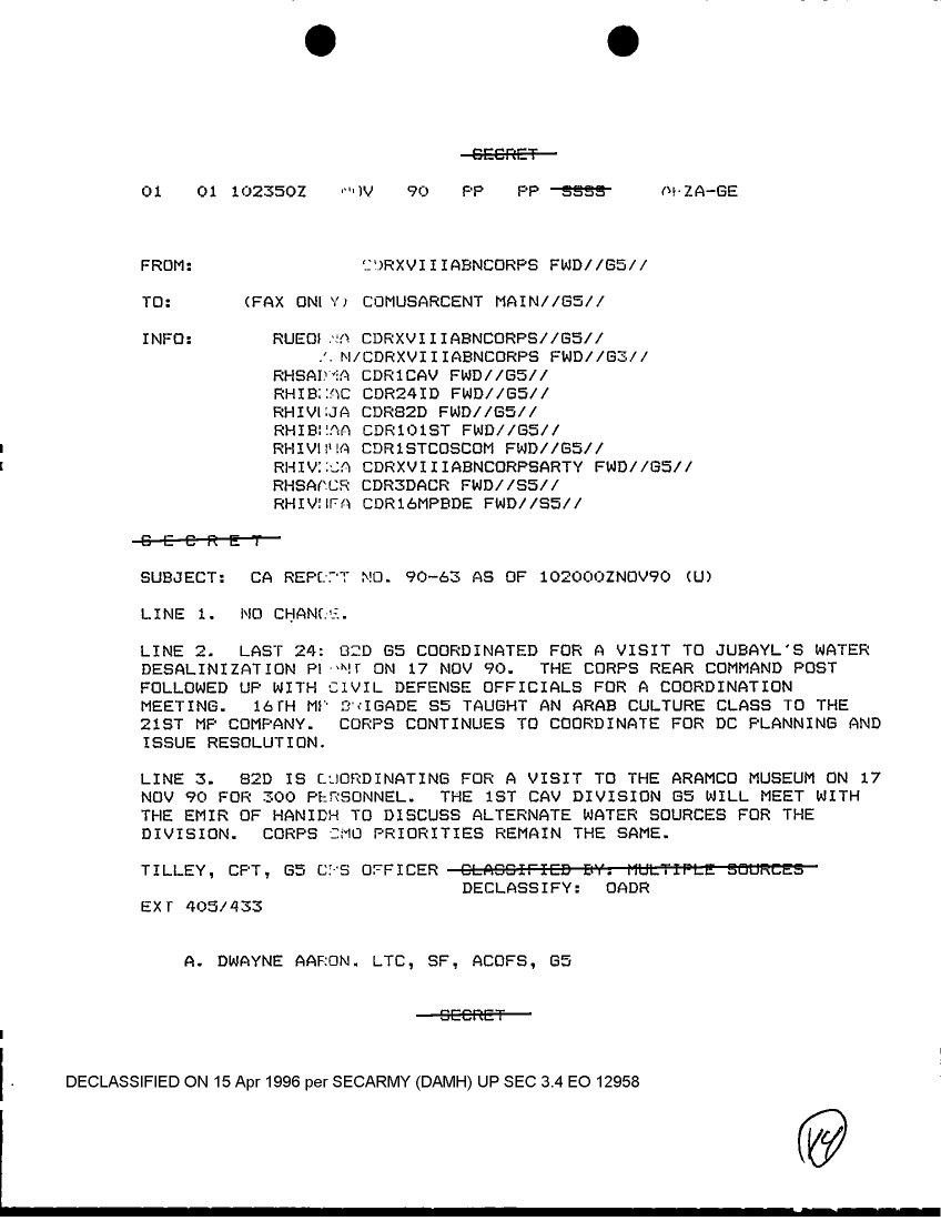 Subject = DAILY STAFF JOURNAL OR DUTY OFFICERS LOG 10 NOV 90