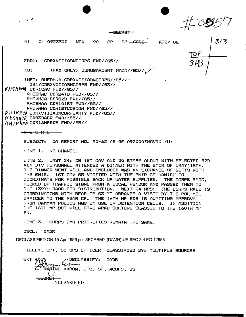 Subject = DAILY STAFF JOURNAL OR DUTY OFFICERS LOG 10 NOV 90