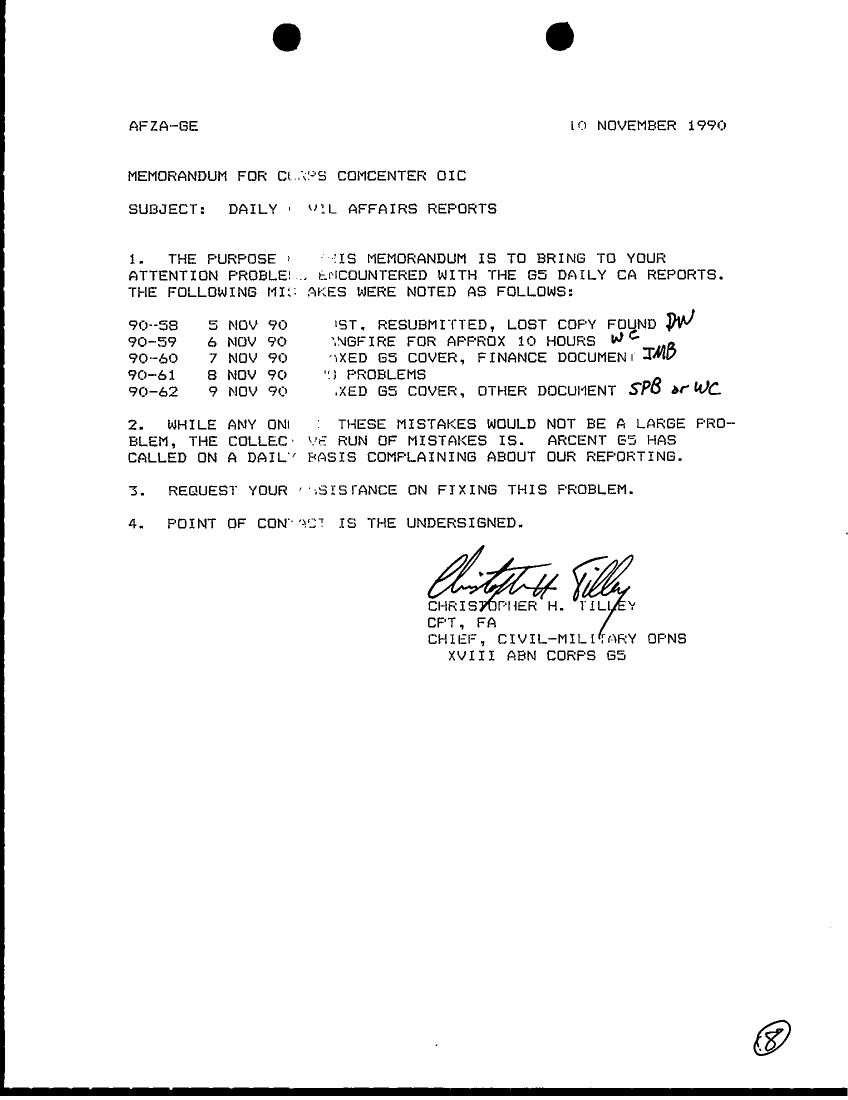Subject = DAILY STAFF JOURNAL OR DUTY OFFICERS LOG 10 NOV 90