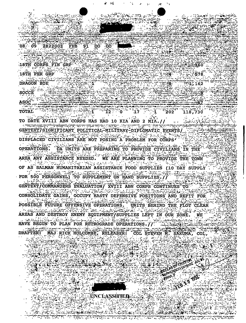 Document 9 f:/Week-14/BX000042/SITUATION REPORTS FEB-MAR 91/sitrep xviii abn corps 028 feb 91:04179616012074