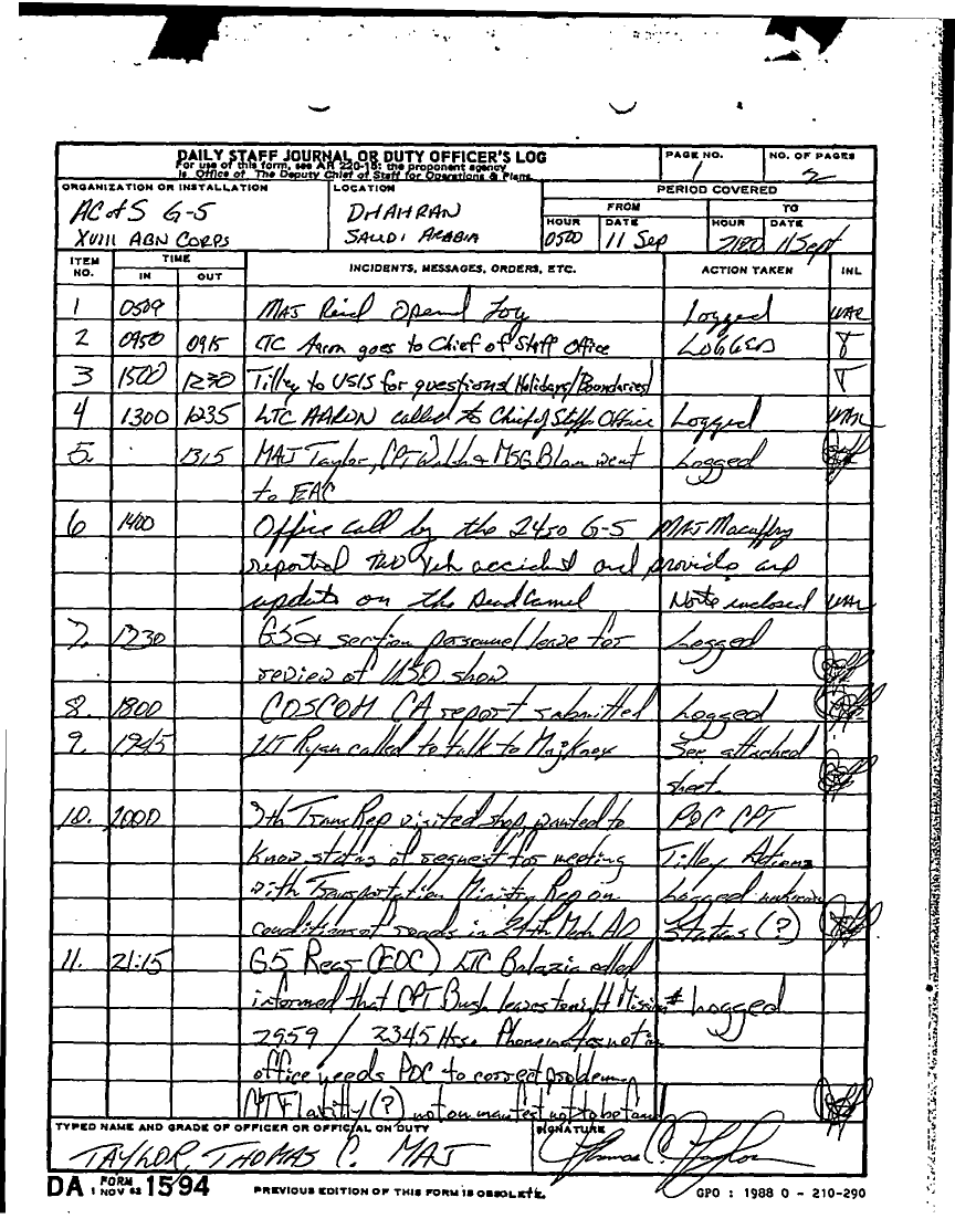 Document 38 f:/Week-13/BX000005/DUTY LOG G5 11 SEP 90/daily staff journal or duty officers log:04179616012076