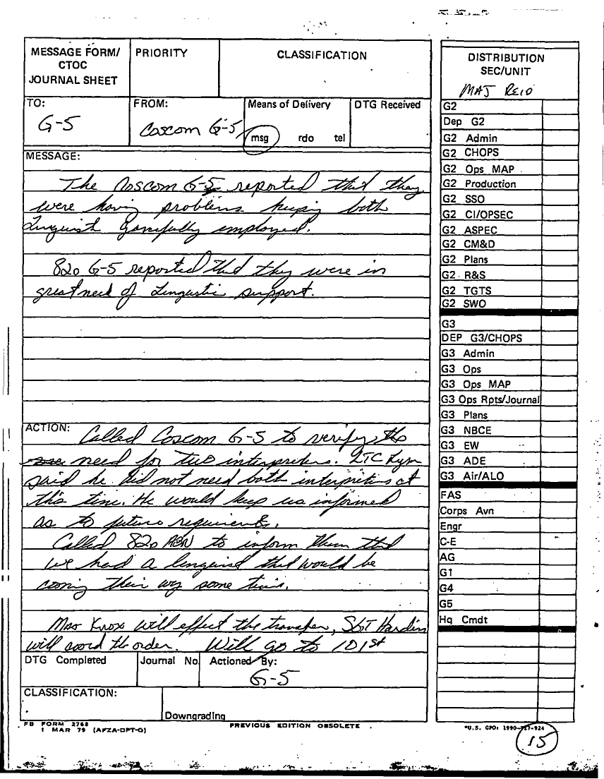 Document 38 f:/Week-13/BX000005/DUTY LOG G5 11 SEP 90/daily staff journal or duty officers log:04179616012076