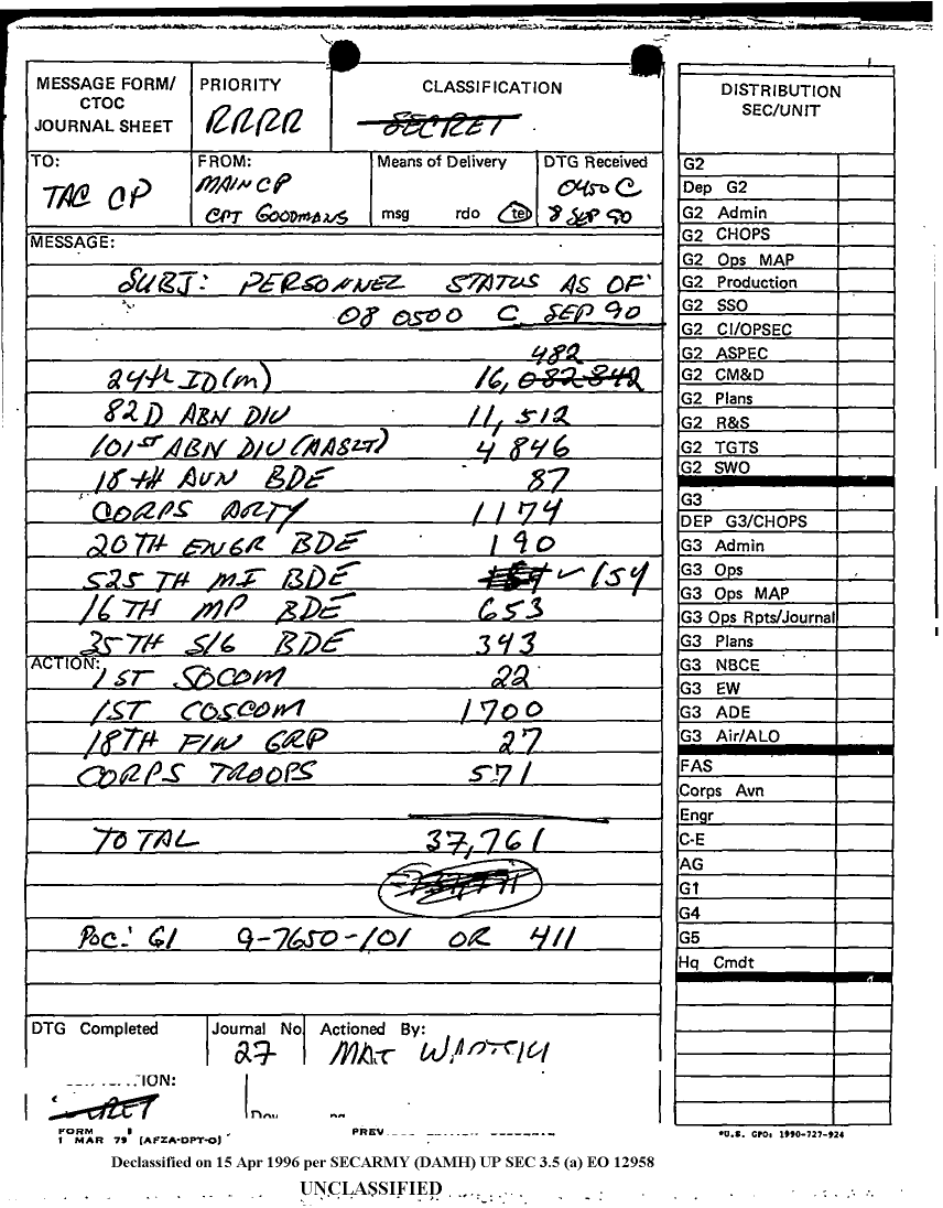 Document 47 f:/Week-14/BX000007/DUTY LOG G3 TAC CP 7 SEP 90/daily staff journal or duty officers log 7 sep t:04179616012077