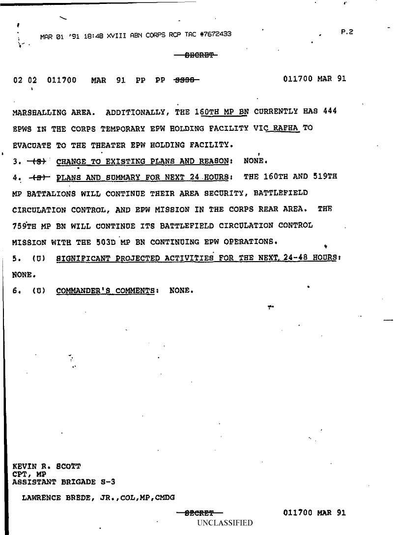 Document 2 f:/Week-08/BX000015/DUTY LOG 16 MP BDE SITREPS G3 MAR 91/commanders summary 165:0417961601209