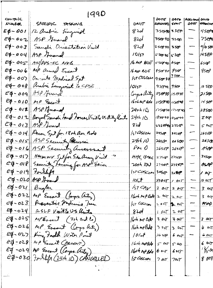 Subject = SPECIFIC TASKINGS 1991