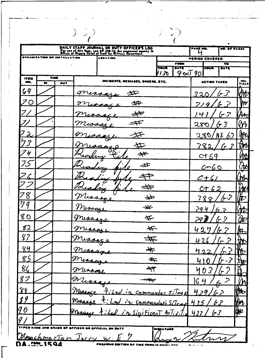 Subject = DAILY STAFF JOURNAL OR DUTY OFFICERS LOG 30 SEPT 90