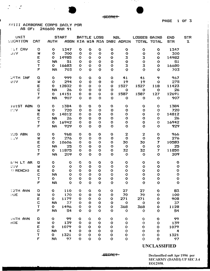 Document 3 f:/Week-12/BX000004/PERSONNEL STATUS REPORTS 21-27 MARCH 91/xviii airborne corps daily psr:041796160120119
