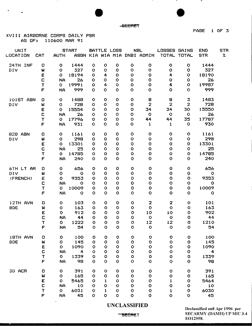 Document 3 f:/Week-12/BX000004/PERSONNEL STATUS REPORTS 11-20 MARCH 91/personnel daily summary report:041796160120124