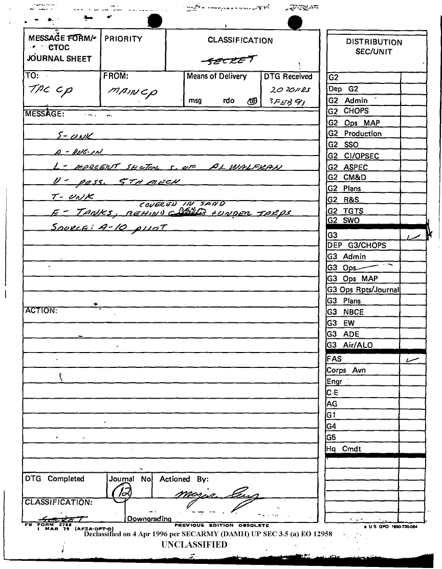 Document 38 f:/Week-12/BX000024/DUTY LOG G3 TAC CP 3 FEB 91/daily staff journal or duty officers lgo:041796160120130
