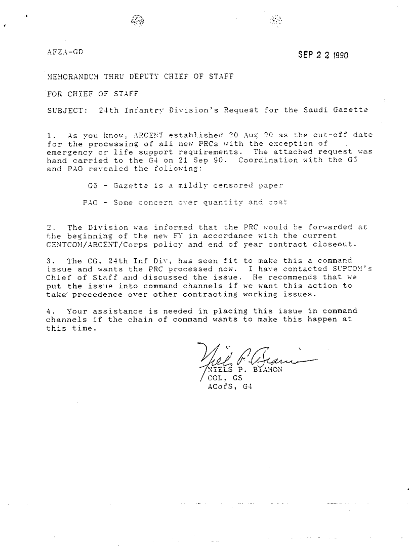 Document 5 f:/Week-12/BX000026/DUTY LOG G3 CORPS POLICY LETTERS SEP 90/24th infantry divisions request for the saudi ga:041796160120132