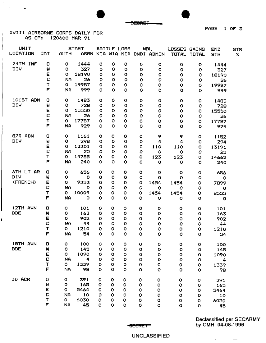 Folder Title = PERSONNEL STATUS REPORTS 11-20 MARCH 91