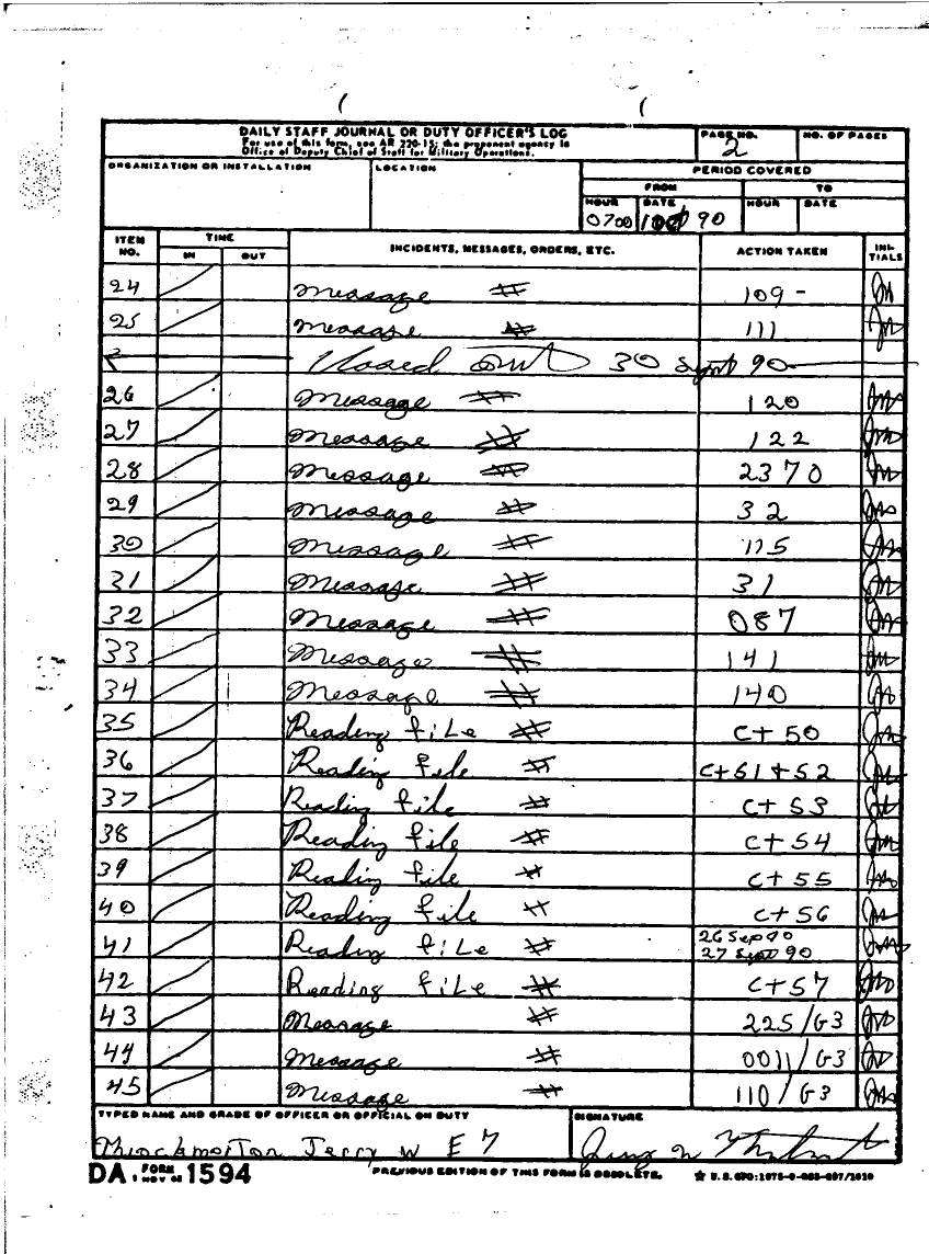 Subject = DAILY STAFF JOURNAL OR DUTY OFFICERS LOG 30 SEPT 90