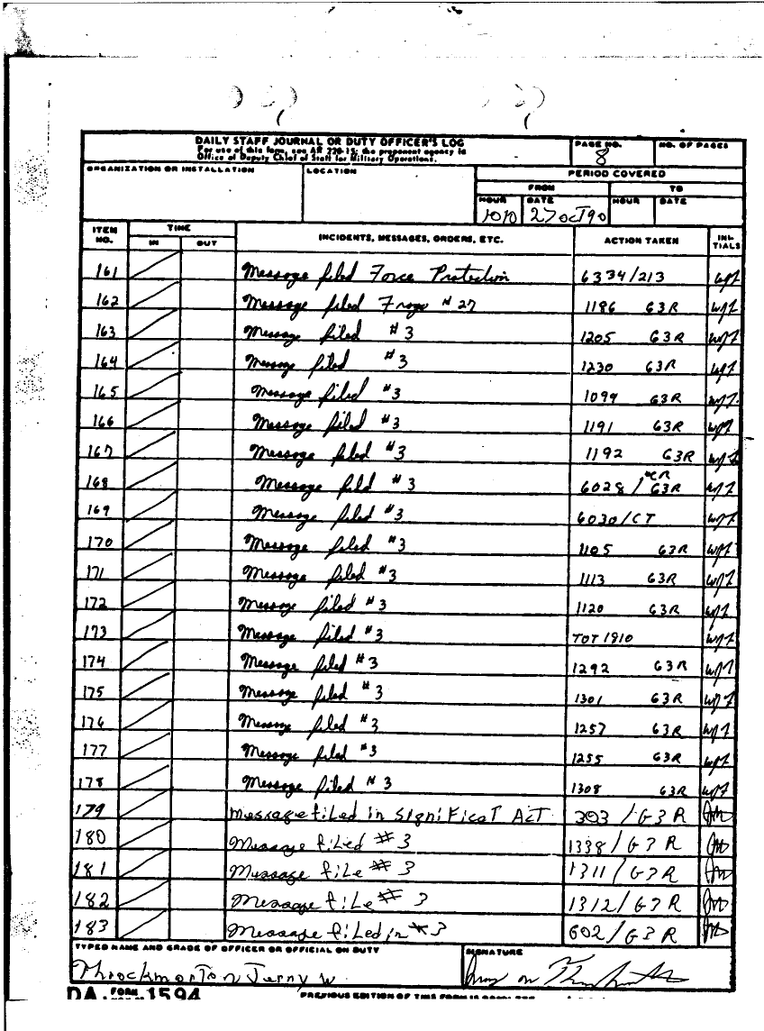 Subject = DAILY STAFF JOURNAL OR DUTY OFFICERS LOG 30 SEPT 90