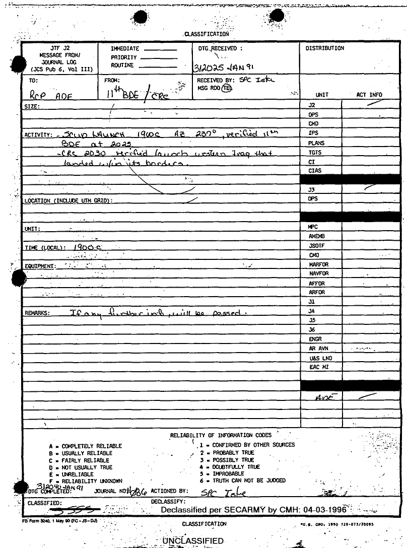 Document 1 f:/Week-09/BX000019/DUTY LOG G3 REAR 1 FEB 91/scud launch:0415961640004