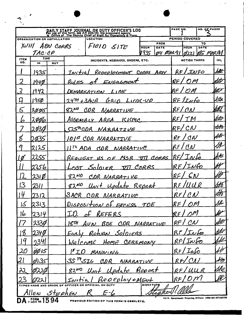 Folder Title = DUTY LOG G3 TAC CP 4 MAR 91