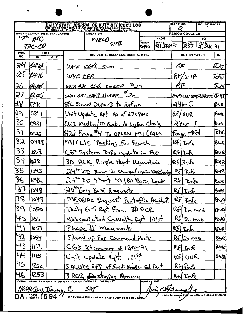 Document 55 f:/Week-12/BX000024/DUTY LOG G3 TAC CP 26 JAN 91/daily staff journal or duty officers log:04179616012061