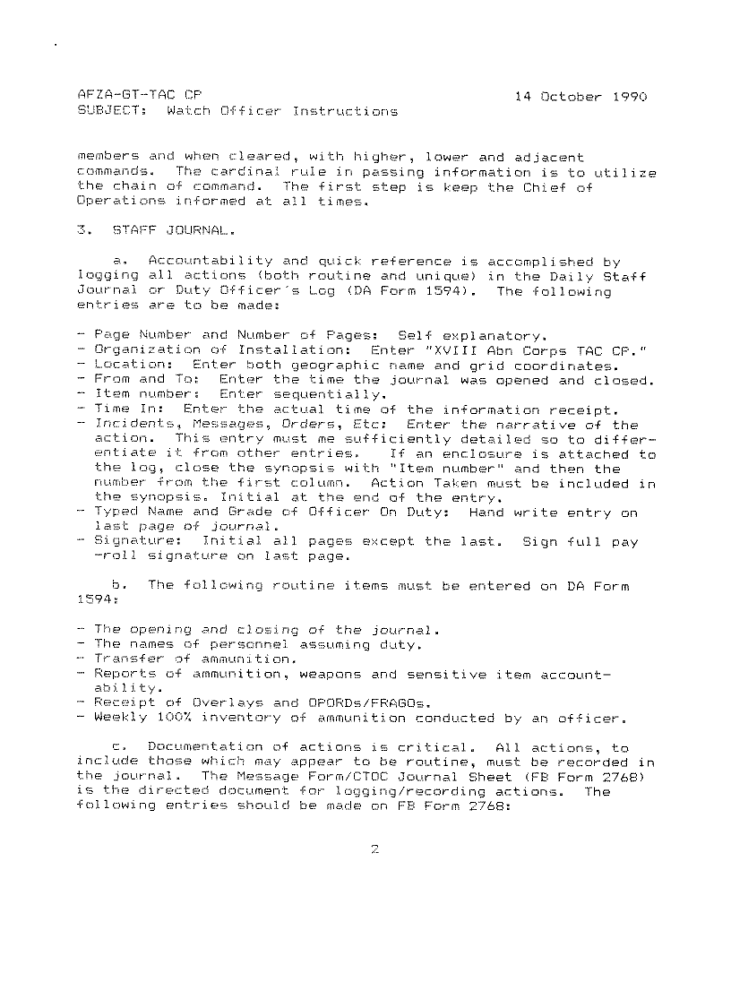 Document 6 f:/Week-12/BX000026/DUTY LOG G3 CORPS TACTICAL CP/watch officer instructions:0415961640009