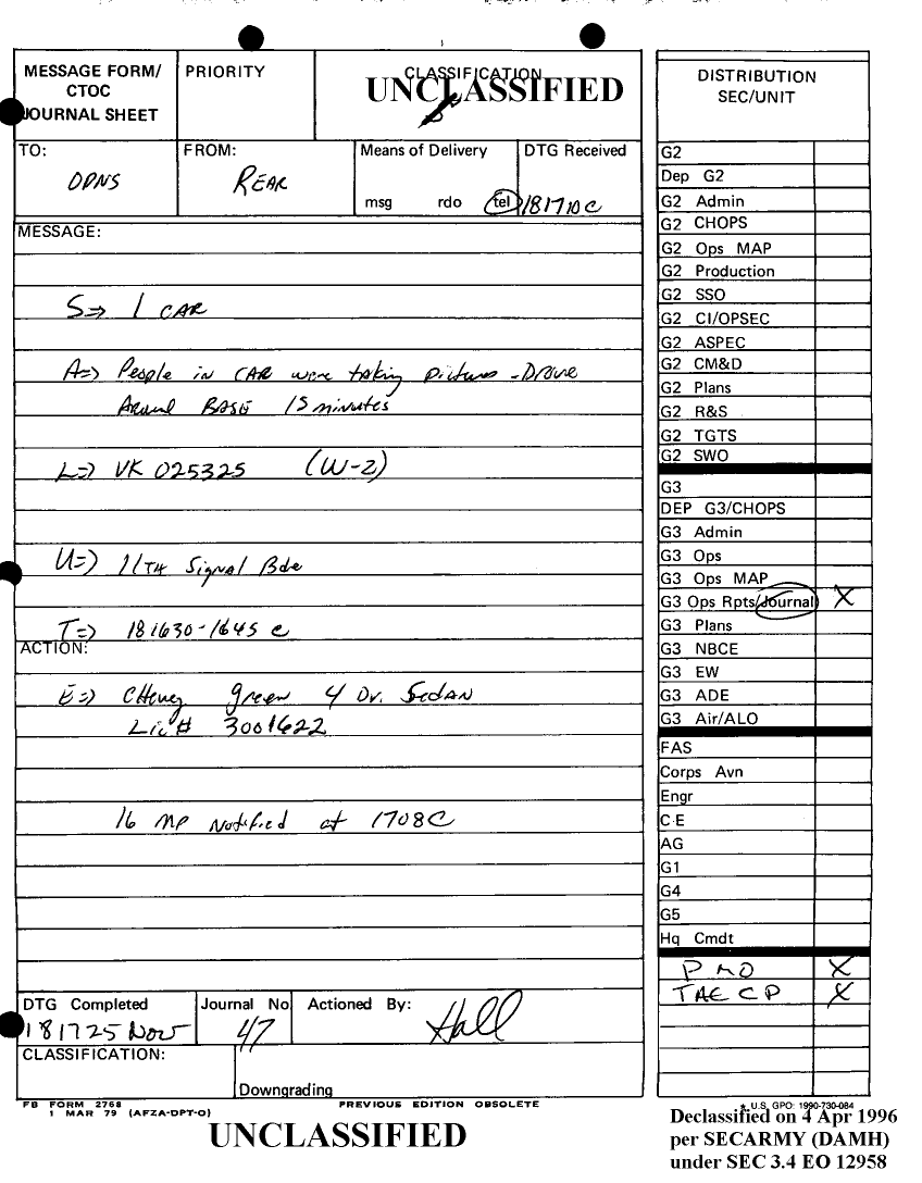 Document 81 f:/Week-12/BX000030/DUTY LOG MAIN CP G3 18 NOV 90/daily staff journal or duty officers log:04179616012086