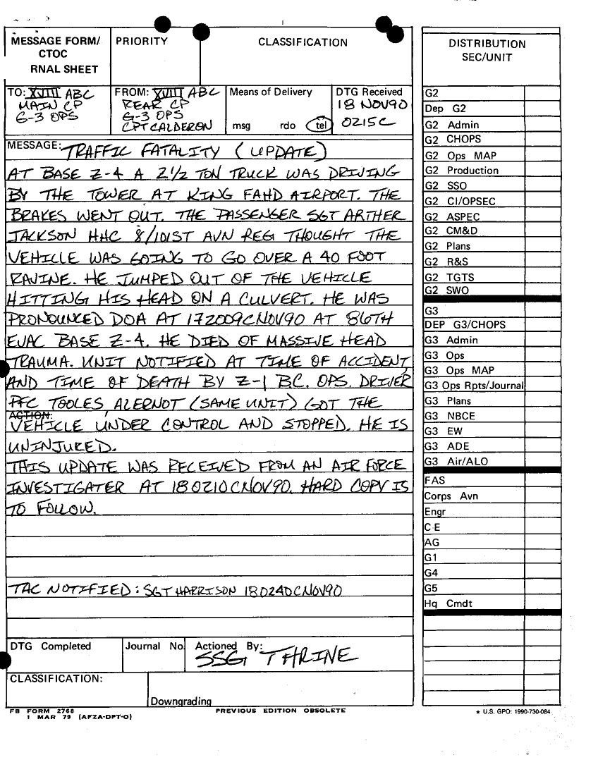 Document 81 f:/Week-12/BX000030/DUTY LOG MAIN CP G3 18 NOV 90/daily staff journal or duty officers log:04179616012086