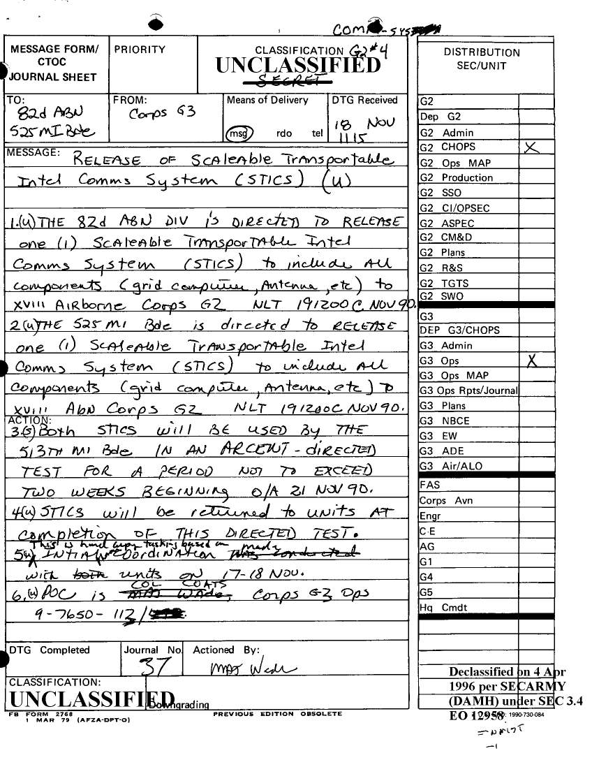 Document 81 f:/Week-12/BX000030/DUTY LOG MAIN CP G3 18 NOV 90/daily staff journal or duty officers log:04179616012086