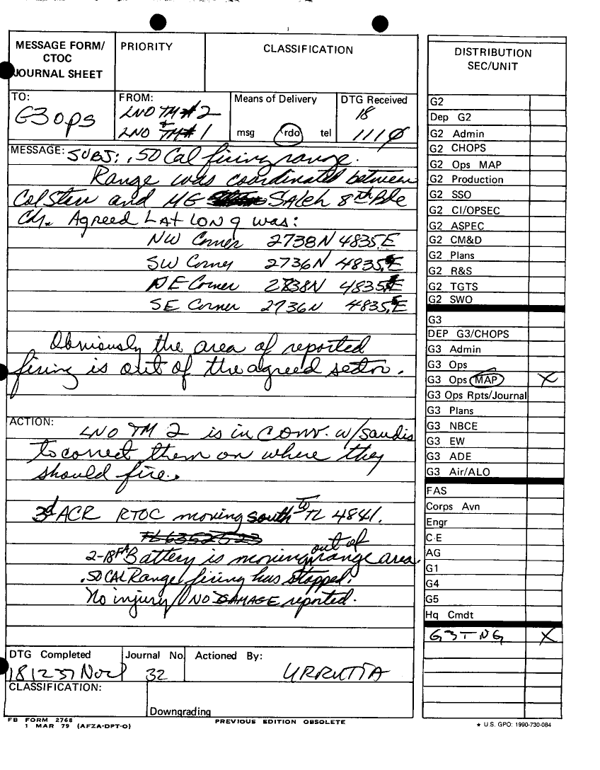 Document 81 f:/Week-12/BX000030/DUTY LOG MAIN CP G3 18 NOV 90/daily staff journal or duty officers log:04179616012086