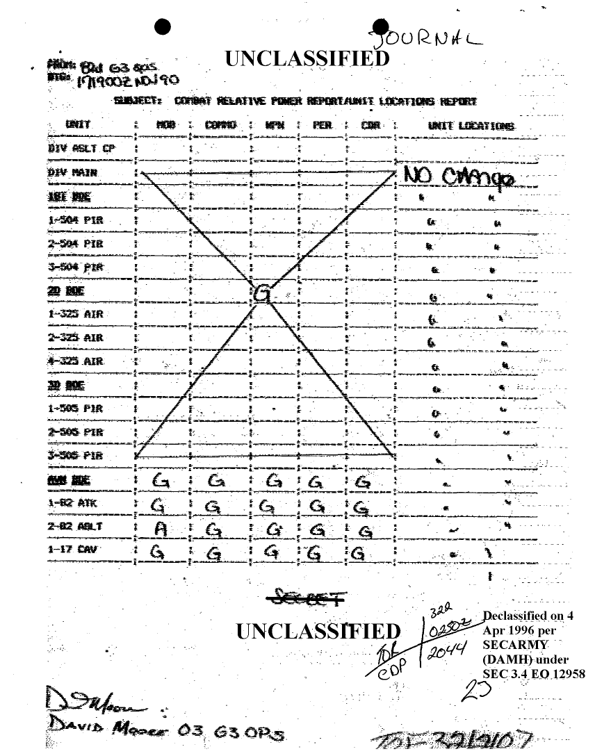 Document 81 f:/Week-12/BX000030/DUTY LOG MAIN CP G3 18 NOV 90/daily staff journal or duty officers log:04179616012086