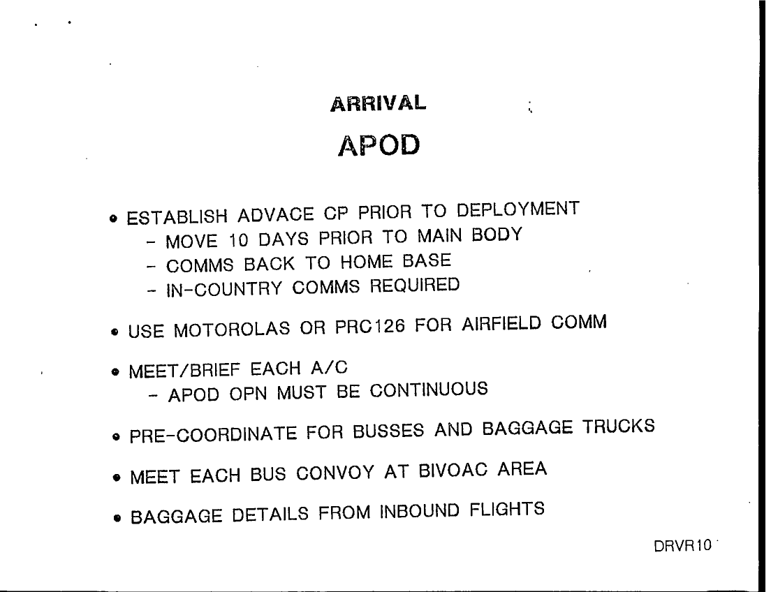 Subject = PRE DEPLOYMENT
