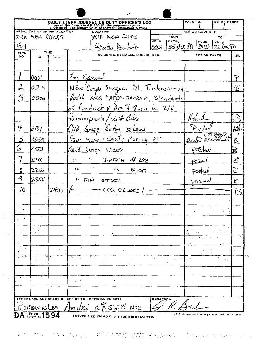 Document 135 f:/Week-15/BX000043/DUTY LOG G1 22-31 DEC 90/daily staff journal or duty officers log:05039613321977