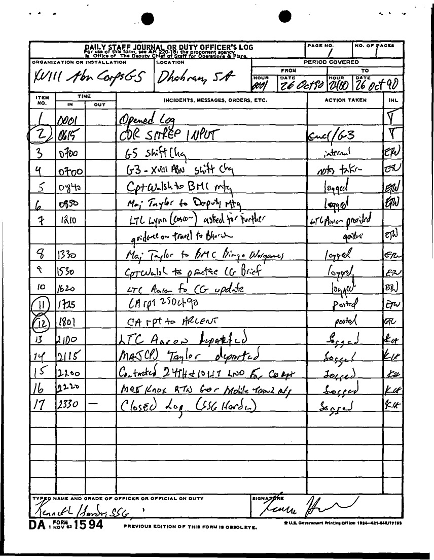 Document 18 f:/Week-13/BX000005/DUTY LOG G5 26 OCT 90/daily staff journal or duty officers log:05039613321943
