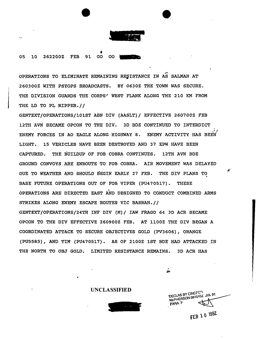 Document 9 f:/Week-14/BX000042/SITUATION REPORTS FEB-MAR 91/sitrep xviii abn corps 026 feb 91:05039613321960