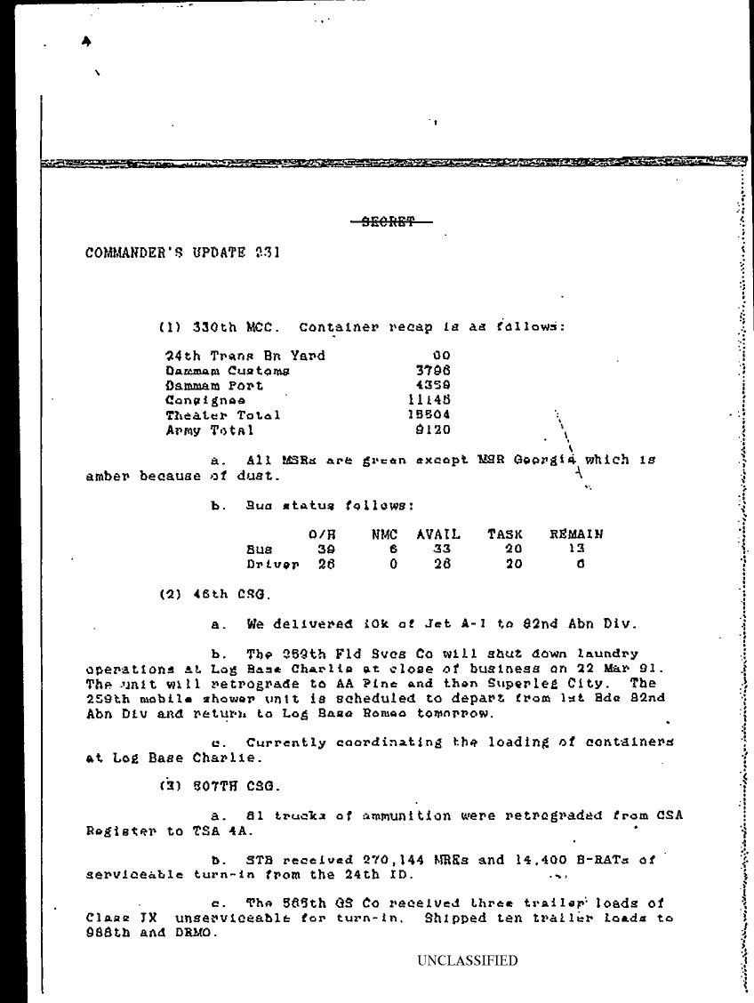 Document 5 f:/Week-08/BX000015/DUTY LOG 1 COSCOM SITREPS G3 MAR 91/commanders update 231:0503961332196