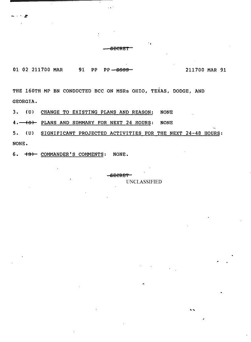 Document 2 f:/Week-08/BX000015/DUTY LOG 16 MP BDE SITREPS G3 MAR 91/commanders summary 185:0503961332197