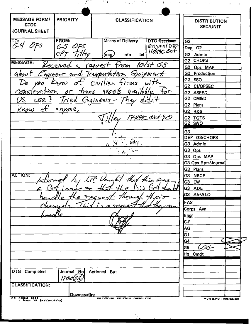 Document 31 f:/Week-13/BX000005/DUTY LOG G5 23 OCT 90/daily staff journal or duty officers log:0523960916136