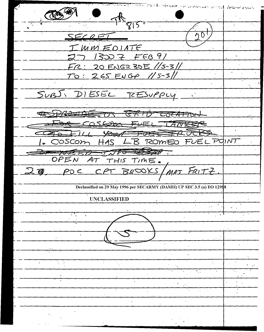 Folder Title = REAR CP FILE 20 EN BDE 28 FEB 91