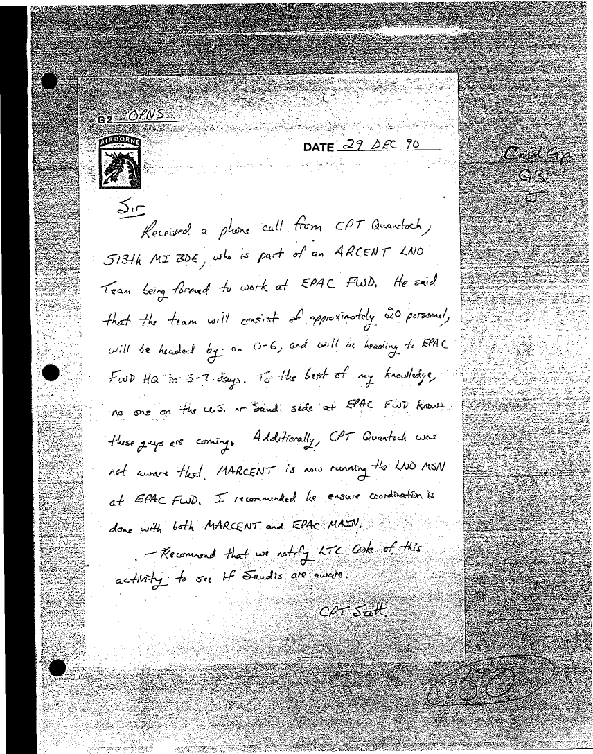 Document 12 f:/Week-16/BX000053/DUTY LOG G3 MAIN CP 29 DEC 90/daily staff journal or duty officers log:05309618571745