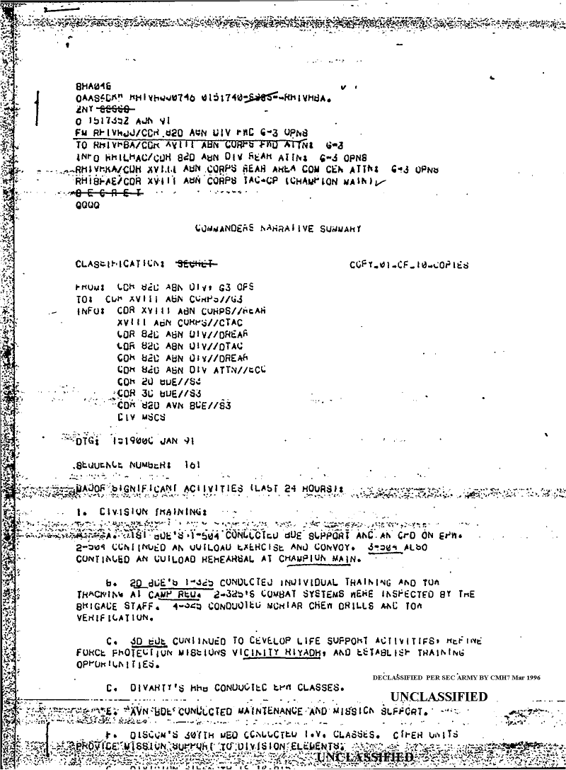 Document 44 f:/Week-08/BX000015/DUTY LOG 82 AB DIV SITREPS G3 JAN 91/commanders narrative summary:05309618571721