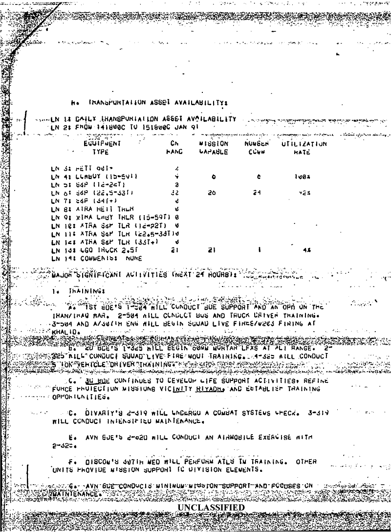 Folder Title = DUTY LOG 82 AB DIV SITREPS G3 JAN 91