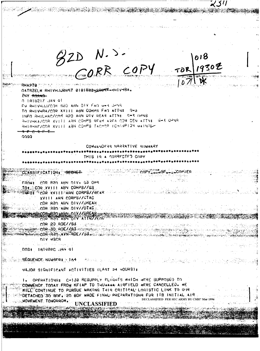 Document 44 f:/Week-08/BX000015/DUTY LOG 82 AB DIV SITREPS G3 JAN 91/commanders narrative summary:05309618571721