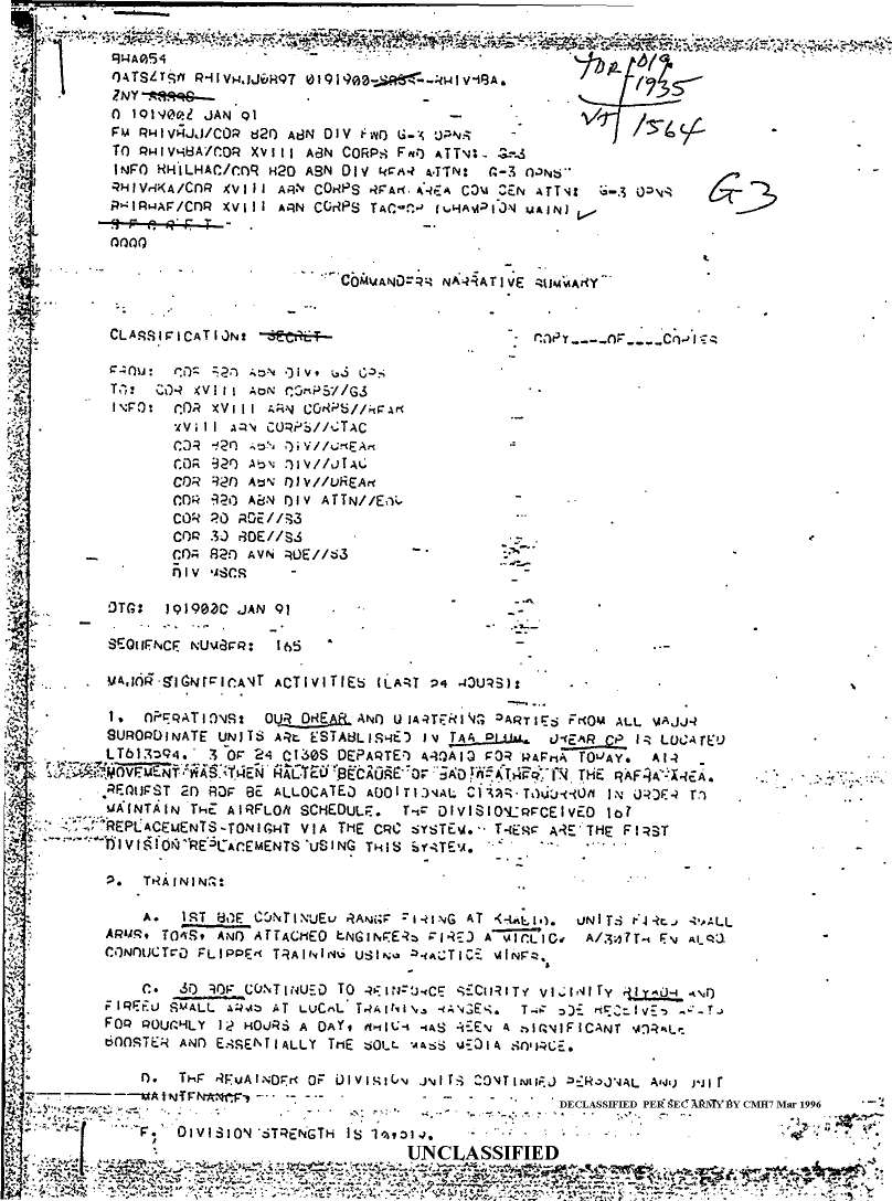 Document 44 f:/Week-08/BX000015/DUTY LOG 82 AB DIV SITREPS G3 JAN 91/commanders narrative summary:05309618571721