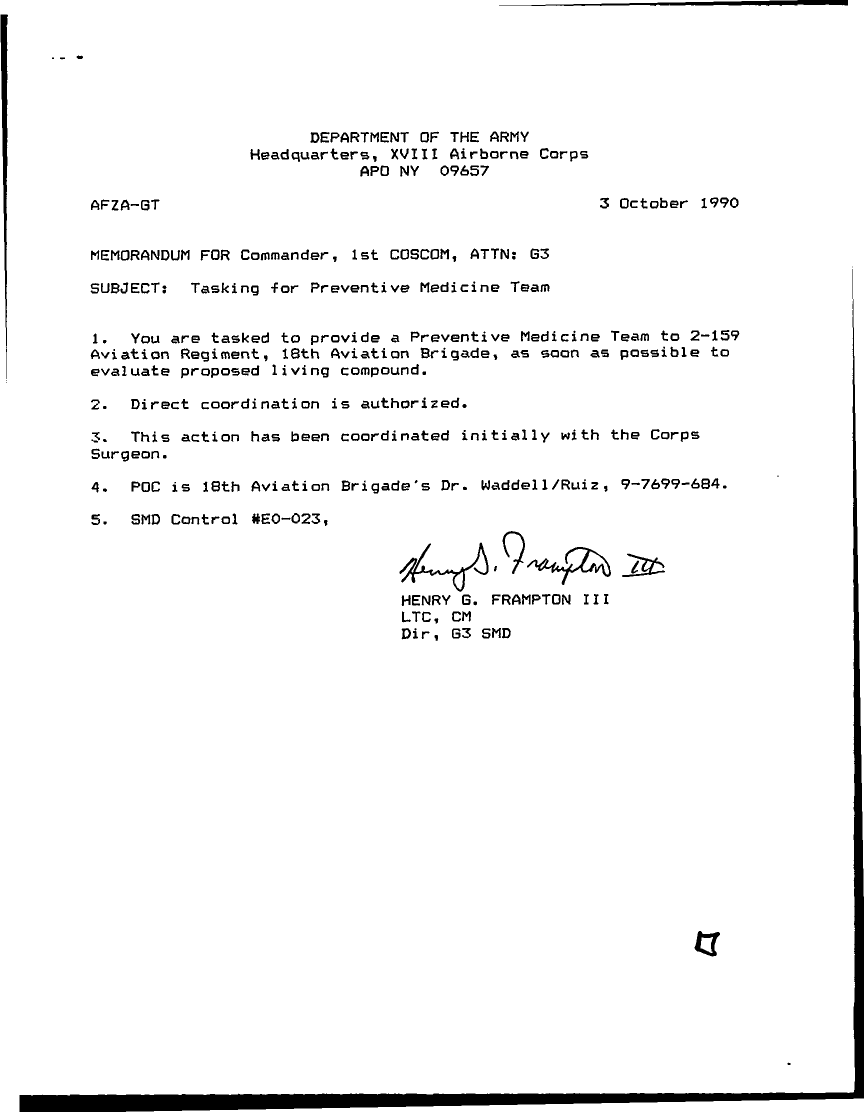 Document 2 f:/Week-08/BX000018/DUTY LOG CORPS TASKING OFFICER FILES - 1 SPT CMD - 2 FOLDERS/tasking for preventative medicine team:0530961857174