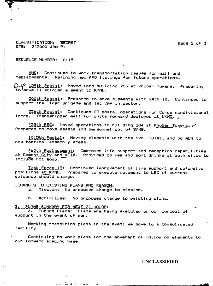 Document 3 f:/Week-08/BX000015/DUTY LOG 18 PER GP SITREPS G3 JAN 91/major significant activities summary 242000 jan :05309618571718