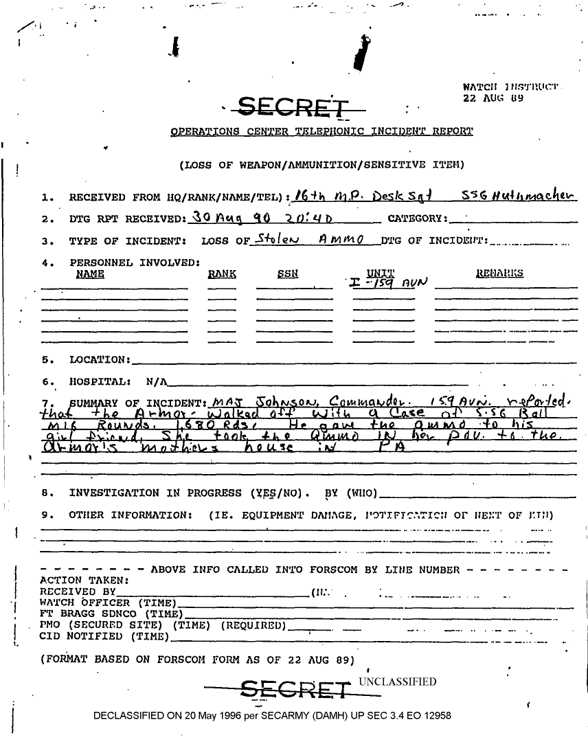 Declassified = 31-MAY-1996