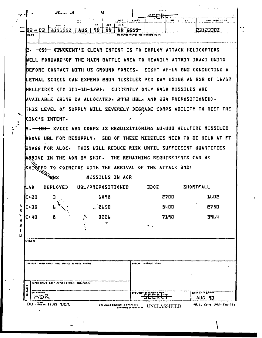 Subject = DAILY STAFF JOURNAL OR DUTY LOG XVIII ABN AUG 90