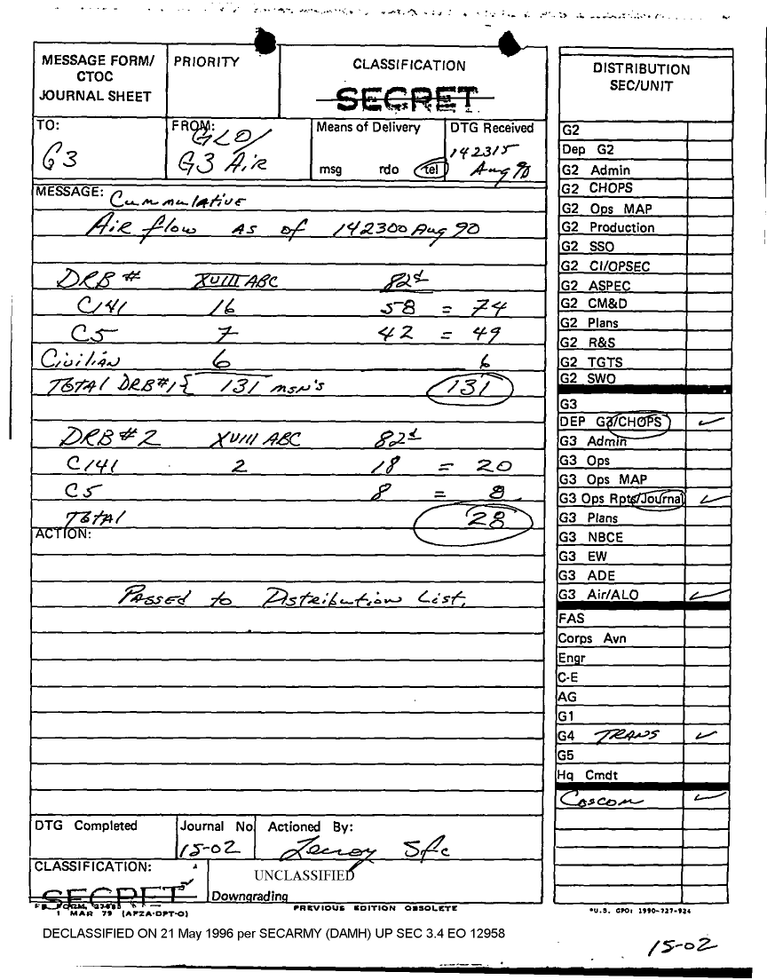 Document 48 f:/Week-10/BX000027/DUTY LOG EOC G3 15 AUG 90/daily staff journal xviii abc 15 aug 90:05319611394120