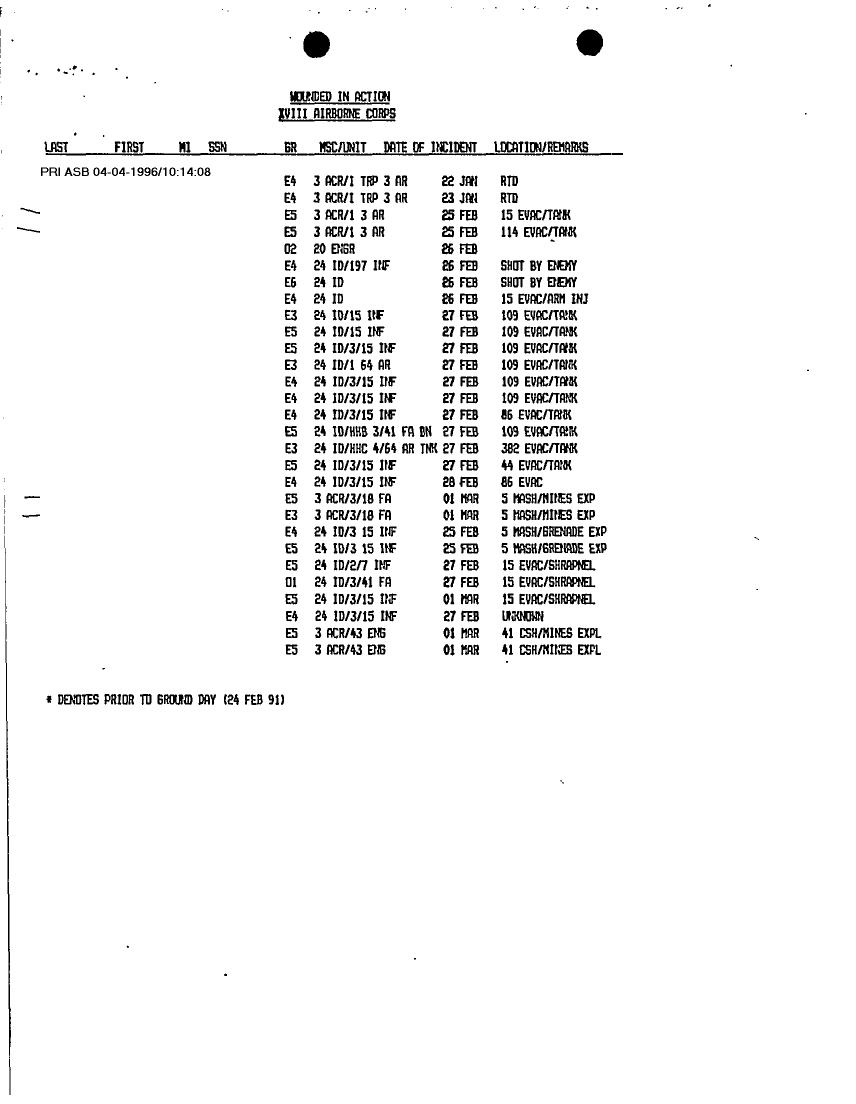 Document 6 f:/Week-12/BX000004/PERSONNEL STATUS REPORTS 1-10 MARCH 91/casualty information:05319611394126