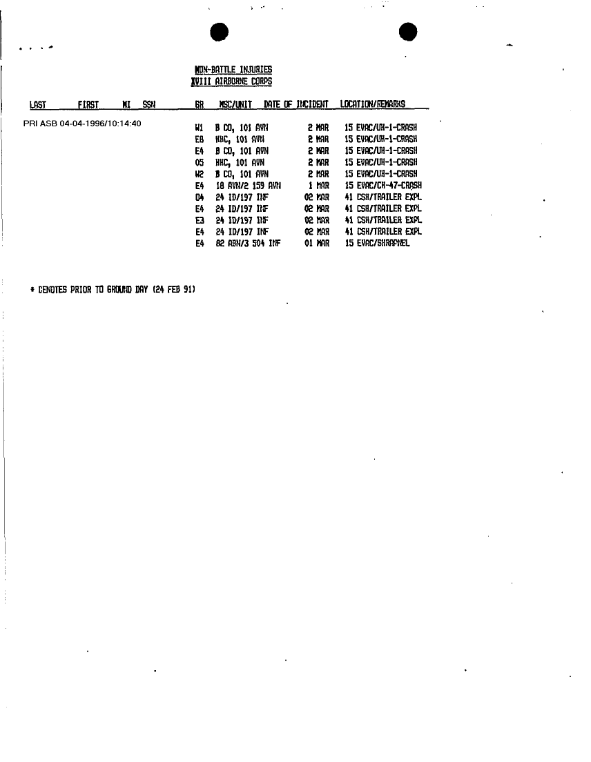 Document 6 f:/Week-12/BX000004/PERSONNEL STATUS REPORTS 1-10 MARCH 91/casualty information:05319611394126