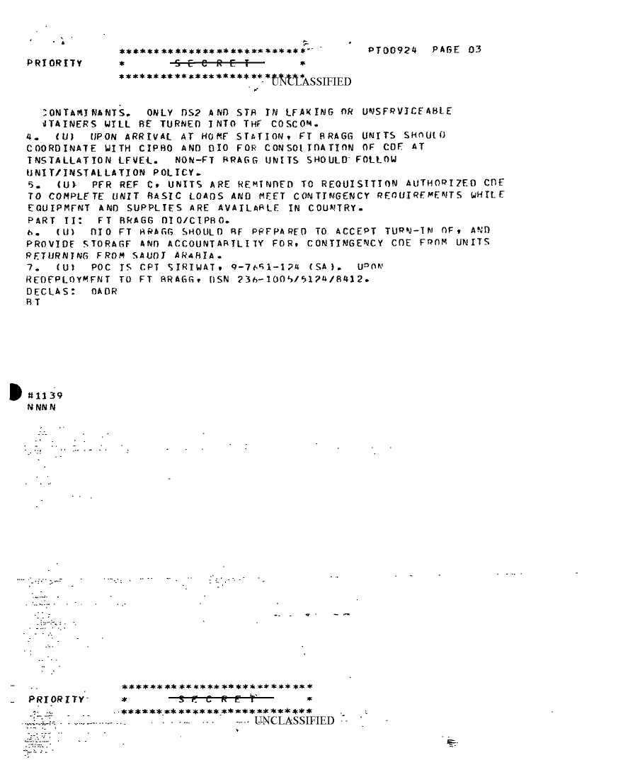 Document 3 f:/Week-22/BX001428/INCOMING MESSAGES DESERT SHIELD CHEMICAL MAR/retrograde of chemical offense equipment:06149615144916
