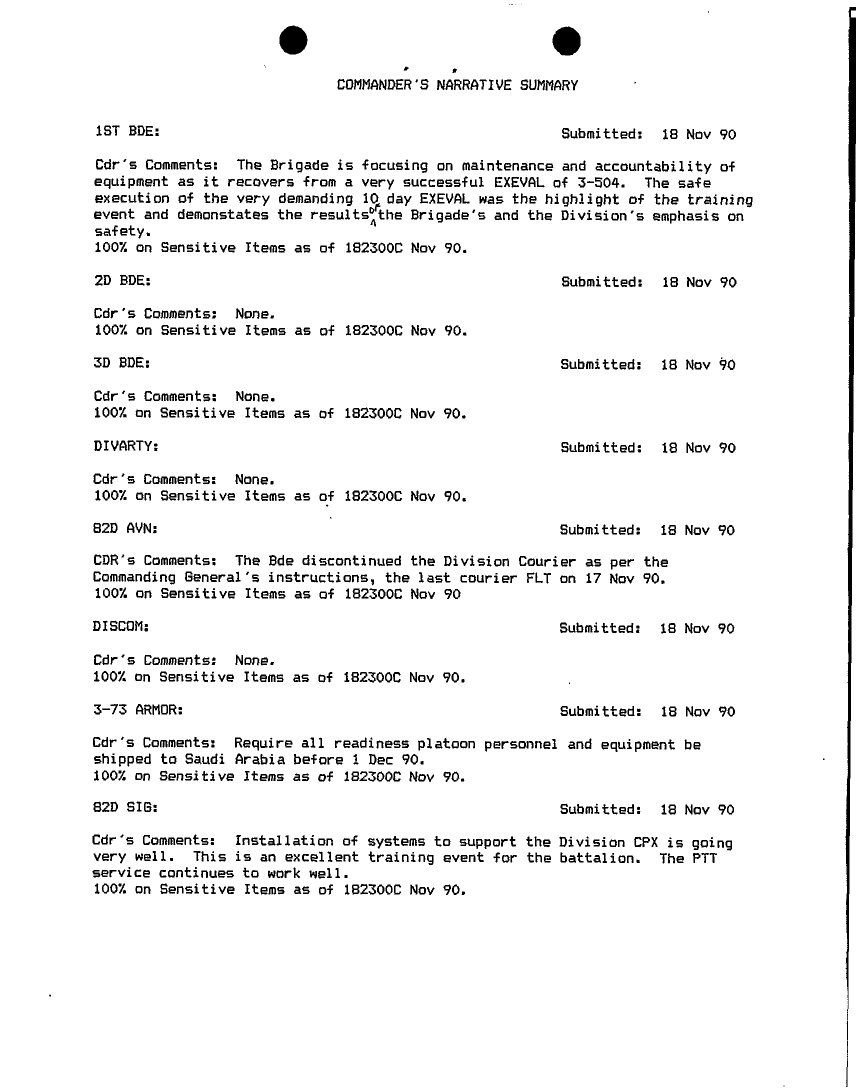 Document 75 f:/Week-18/BX000014/COMMAND REPORTS NOV 92 - 8/commanders narrative summaries nov 90:06079615285229