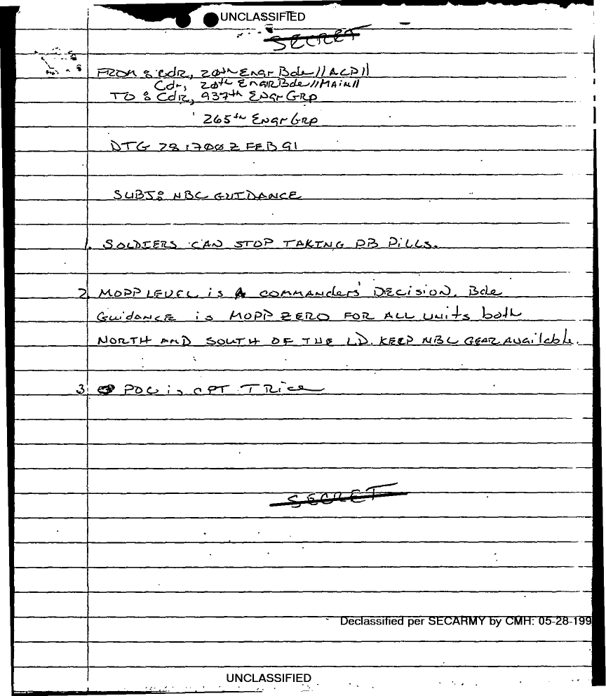 Document 3 f:/Week-18/BX000057/DUTY LOG MAIN CP MESSAGES 20 ENGINEER BDE 28 FEB 91/nbc guidance:06079615285239